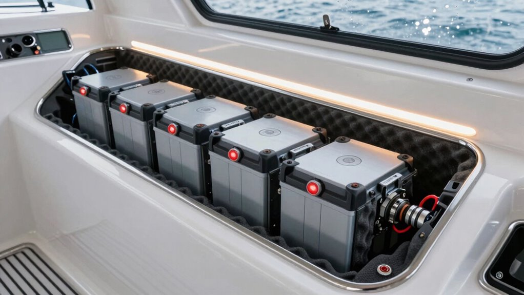 You can expect lithium batteries onboard your boat to last around 5 to 10 years, depending on your maintenance schedules and usage. Proper upkeep, such as regular inspections and keeping them within recommended temperature ranges, helps maximize their lifespan. Sometimes, batteries may need replacement sooner if they show signs of reduced capacity or performance issues. Staying proactive with maintenance guarantees you get the most out of your lithium batteries onboard.