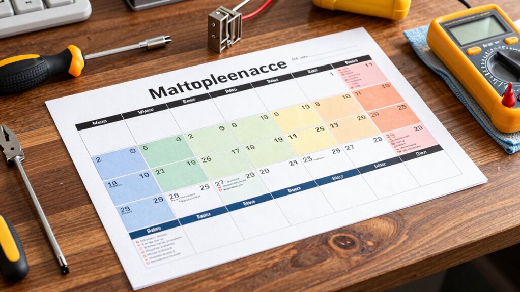 Creating your personalized battery maintenance calendar helps guarantee your batteries stay in peak condition. By organizing regular checkups, you can prevent issues and extend their lifespan, especially if you’re interested in supporting alternative energy solutions. Tailoring your schedule makes it easier to stay consistent with tasks like battery recycling and proper disposal, reducing environmental impact. To get started, consider these key points: