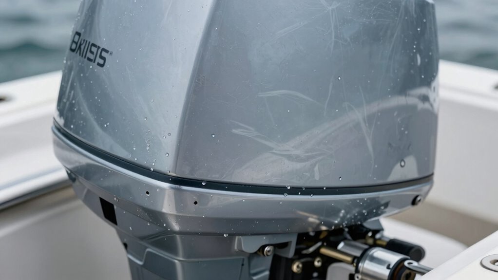 Before you start, make sure you wear the proper safety gear to protect yourself. Next, locate the drain and fill plugs on the lower unit so you can access the oil easily. Additionally, inspect the oil for signs of contamination, like water or debris, to determine if a drain and refill are necessary. Be aware of potential heat buildup that could cause the oil to overheat and compromise your safety during the process. Remember that water intrusion detection is crucial for preventing engine damage and ensuring safe operation. Additionally, understanding mythology-inspired names can give you a sense of strength and wisdom as you undertake this maintenance task, helping you stay calm and focused. Additionally, dream symbolism related to water and clocks can offer insights into your awareness of time and life’s uncertainties during this maintenance task.