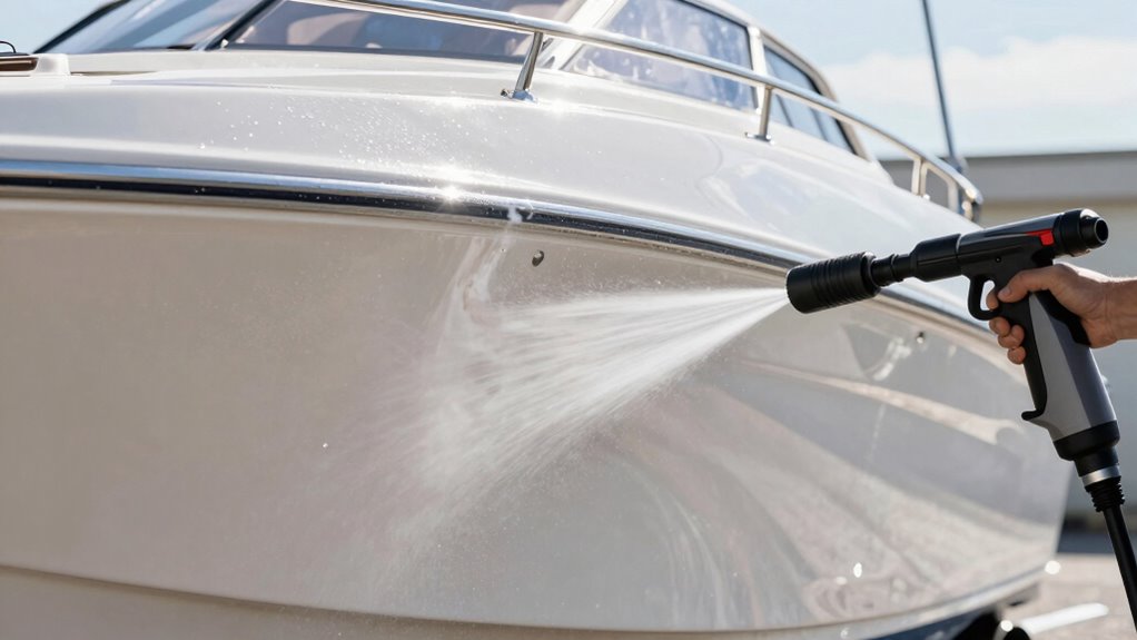 Always test on a small area first. Remember, high pressure can damage sensitive surfaces, so adjust accordingly based on your boat’s condition and material. Proper pressure settings protect your boat’s integrity while ensuring a thorough clean.