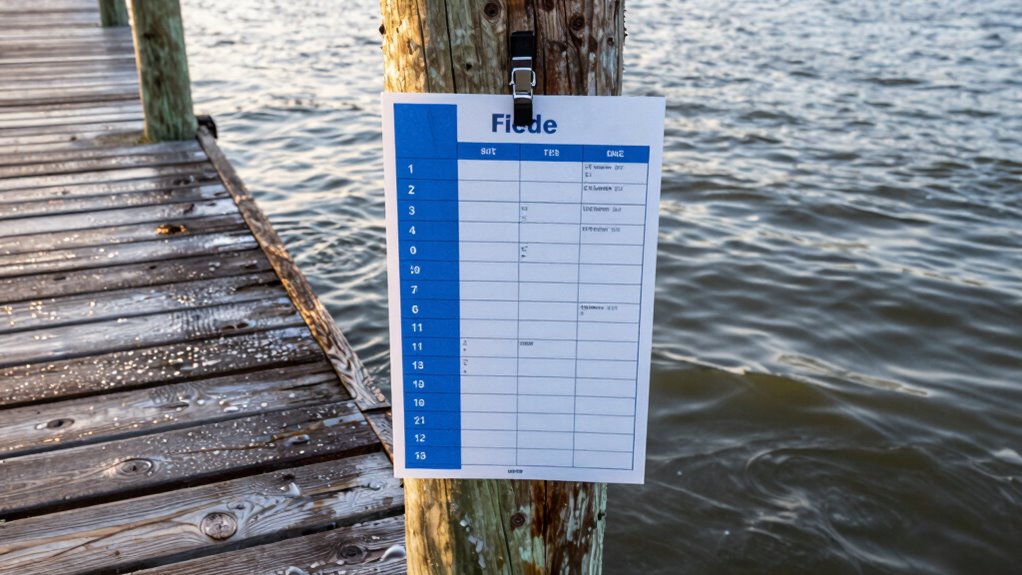 You should update your tide information at least once a day before your activity to guarantee accuracy. Tide chart reliability can vary due to weather events, so use manual adjustment techniques, like observing real water levels, to fine-tune predictions. Checking updated tide data regularly helps you stay on top of changing conditions, ensuring safer and more enjoyable experiences on the water.