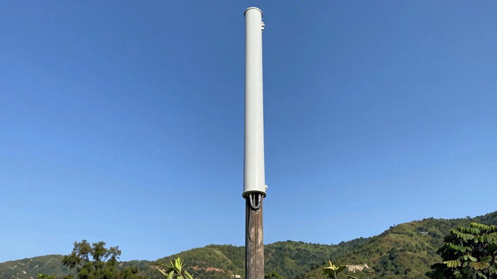 Different antenna types influence height requirements through their gain and mounting techniques. High-gain antennas typically need to be mounted higher to maximize their range, while low-gain antennas can work effectively at lower heights. Your choice of mounting technique also impacts performance; for example, using sturdy, elevated mounts reduces signal loss and interference. Adjusting height based on antenna gain and proper mounting guarantees ideal signal coverage and reliable communication.