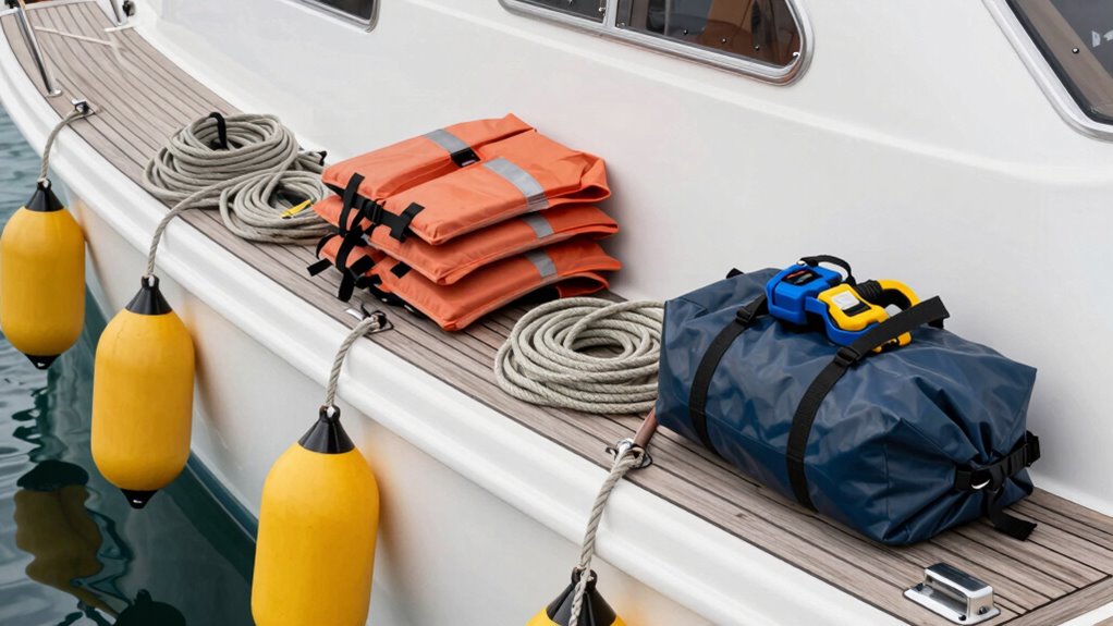 Before heading out on the water, double-check that all your safety and emergency gear is ready to go. Confirm your life jackets are in good condition, easily accessible, and properly fitted for everyone onboard. Verify that your emergency flares are current, stored in waterproof containers, and within reach in case of distress signals. Test your VHF radio and other communication devices to confirm they’re working. Make sure you have a fully stocked first aid kit, a whistle or signaling device, and a flashlight with fresh batteries. Keep all gear organized and in visible locations so you can quickly grab what you need during an emergency. Additionally, consider incorporating medical alert wearables with GPS capabilities to monitor health and ensure quick assistance if needed. Using reliable gear and regular checks can significantly enhance your safety preparedness. Being prepared with comprehensive safety equipment can make all the difference if the unexpected happens. Regularly inspect your safety gear for signs of wear and tear to maintain gear integrity and reliability.
