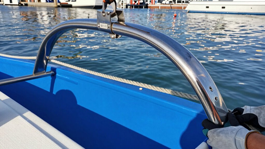 Have you ever wondered how boats safely carry small lifeboats or rescue boats? Dinghy davits are essential components that make this possible. These sturdy devices are designed to lift and lower small boats, ensuring quick and safe deployment in emergencies. Proper boat maintenance is crucial to keep dinghy davits in top condition, preventing corrosion and mechanical failures. Marine electronics, like sensors and control systems, enhance their safety by providing real-time load and position data. Without reliable dinghy davits, rescuing crew or passengers could become risky or impossible. They are vital for safety, especially on larger vessels, offering peace of mind and ensuring quick access to rescue boats when needed. Load limits are a key factor in ensuring safe operation, as exceeding them can lead to equipment failure or accidents. Additionally, understanding marine safety standards helps ensure that dinghy davits meet regulatory requirements and operate reliably. Properly maintained and integrated with marine electronics, dinghy davits play a pivotal role in maritime safety and require regular inspections to detect potential issues early. Regular maintenance procedures ensure the longevity and reliability of these critical safety devices. Recognizing the importance of load management can significantly reduce the risk of accidents during operation.