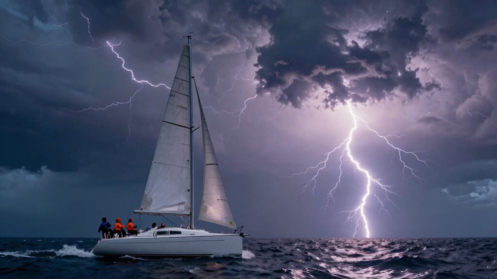 • Remember that storm behavior can change rapidly, so stay alert and monitor weather updates constantly. Additionally, understanding lightning safety principles can help prevent injuries during unexpected strikes. Being familiar with biosensors and wearable tech can also assist you in tracking real-time health indicators during stressful situations onboard. Knowing knives and safety tips can help prevent injuries when handling equipment during emergencies. Moreover, staying informed about altcoin seasons and crypto market patterns can teach valuable lessons in recognizing rapid changes and acting accordingly.