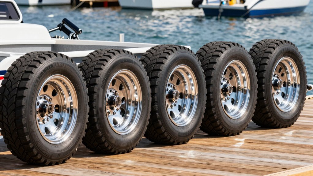 Think of these combos as the backbone of your boat’s journey — they need to sustain everything on board. Most tire and wheel combos I recommend have a weight capacity ranging from 1,000 to 3,500 pounds, depending on the size and type. Always check the manufacturer’s specifications to verify they match your trailer’s weight. It’s like choosing the right shoes — you need the right fit for your adventure.