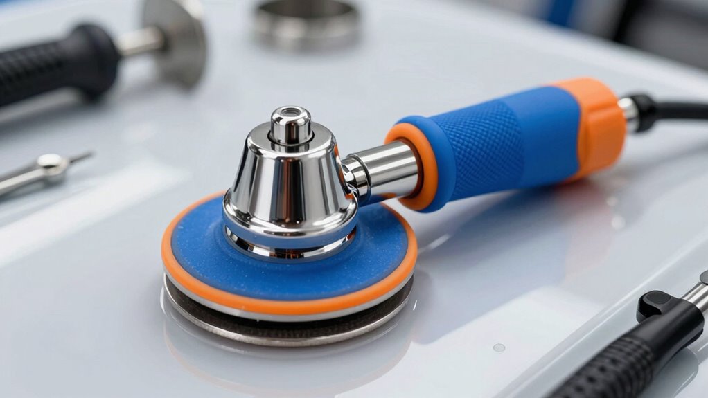 Choosing the right rotary buffer hinges considerably on its power and speed control features. Power, measured in watts or amps, influences its torque, essential for tackling tough gelcoat oxidation and deep scratches. Variable speed control allows me to adjust RPM precisely, which is crucial for different stages of restoration—higher speeds for aggressive polishing and defect removal, lower speeds for finishing and applying wax. Consistent power output at various speeds ensures smooth operation, preventing stalls when working on stubborn oxidation. Additionally, a motor with good heat dissipation keeps the buffer stable during extended use, avoiding overheating and maintaining performance. Overall, a buffer with adjustable speed and sufficient power provides the control needed to achieve professional results without damaging the gelcoat.