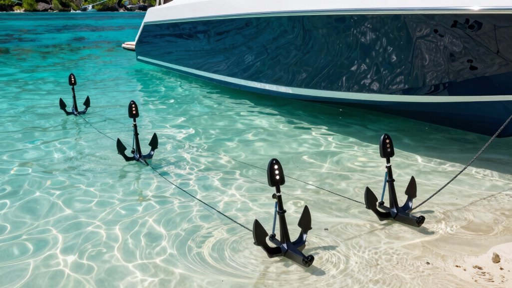 Water depth considerably impacts anchor performance because deeper water requires more force to hold your boat steady. I’ve found that in shallow water, Power Pole-style anchors work great since they anchor quickly and securely. However, in deeper water, I make sure to use longer anchors or additional support to maintain stability. Understanding these effects helps me choose the right system and avoid drifting, especially in varying depths.